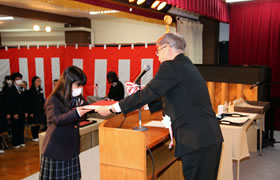 2020年2月29日 第43回 卒業式 2月29日(土)、令和元年度 第43回卒業式が挙行されました。 多くの来賓・保護者の見守る中、卒業証書が代表に手渡されその後、各賞状、各種検定認定証が授与されました。 全員で校歌や式歌を斉唱し、感動のうちに卒業生43期生は式場を後にしました。