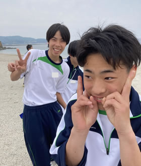 2025年4月25日 1年生 宿泊研修 1日目① 令和7年4月25日(金)、1年生の宿泊研修が始まりました。 出発式を本校講堂で行いました。 みんなで協力して荷物を運びます。 バスに乗って出発です! 道中とても楽しそうです。 無事に到着しました。 天候も良く、青空が広がっています。 昼食です。 豚骨ラーメンなどがありました。 しっかり食べて午後の研修に臨みます。 海岸を散策しました。