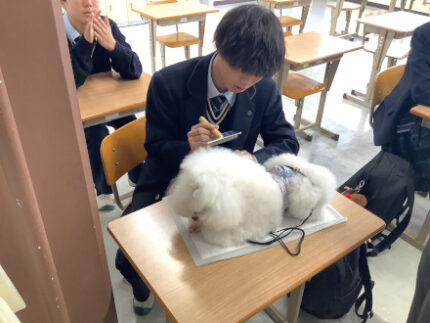 2025年12月11日 1年生職業体験 12月9日(火)18分野の大学、専門学校の先生に来ていただき、初めての職業体験をしました。 ペットのトリマー、美容師、声優さん、プログラマーなどの体験を楽しみながら行うことができました。